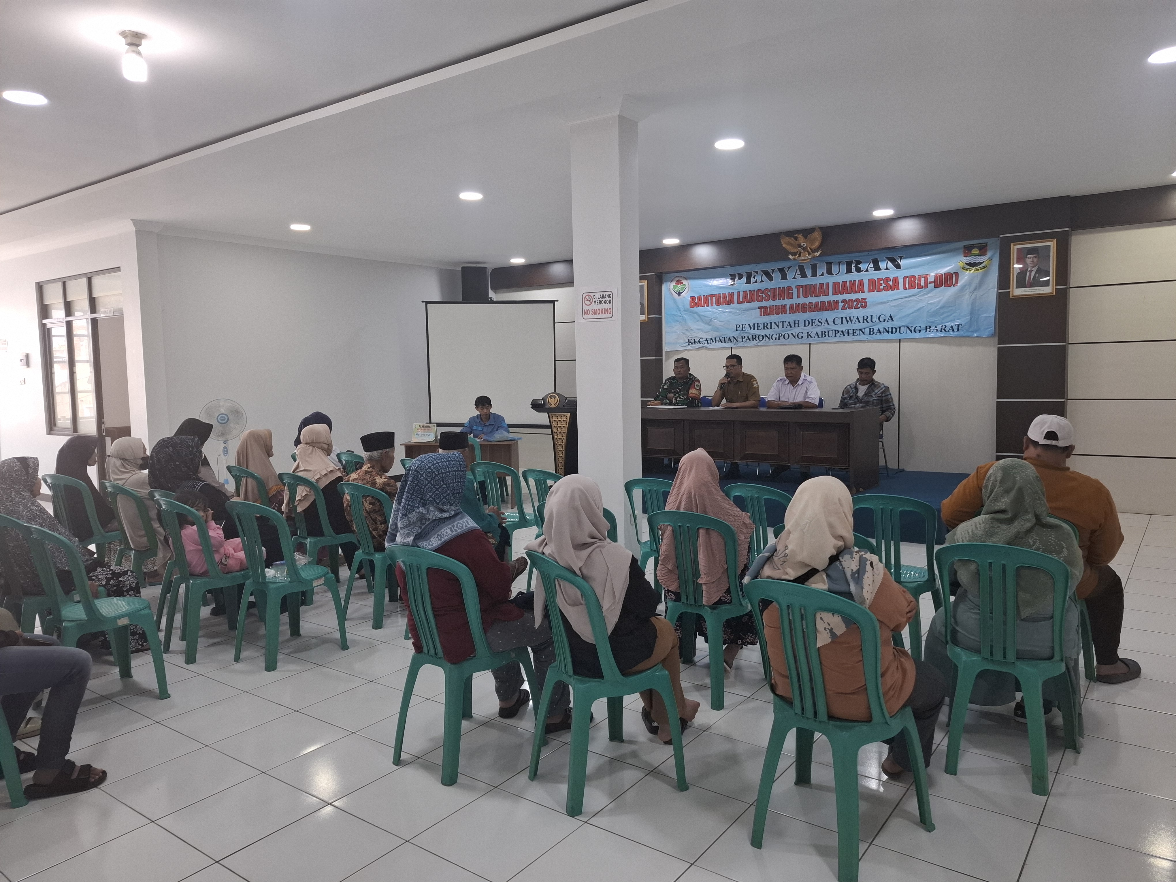 Pada Triwulan III Tahun Anggaran 2025, Pemerintah Desa Ciwaruga, Kecamatan Parongpong, Kabupaten Bandung Barat, melaksanakan kegiatan penyaluran Bantuan Langsung Tunai (BLT) yang bersumber dari Dana Desa. Kegiatan ini berlangsung dengan tertib dan lancar di aula kantor Desa Ciwaruga.
